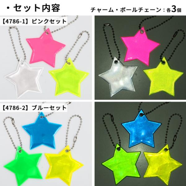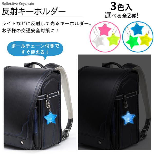 反射キーホルダー 3色セット 全2種 ■ リフレクター チャーム 光る 交通安全 ボールチェーン 夜間 安全 ランドセル 小学生 通学 通勤 塾 習い事 ■ eng-7