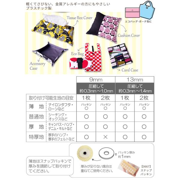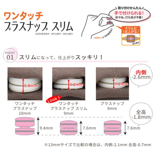 大容量 ワンタッチプラスナップ スリム 9mm 13mm 日本製 ハンディプレス不要 工具不要 ハンドメイド 手芸 手作り スナップボタン プラボタン 手作り ホック 手芸 パーツ ハンドメイド 材料 手芸用品 洋裁材料
