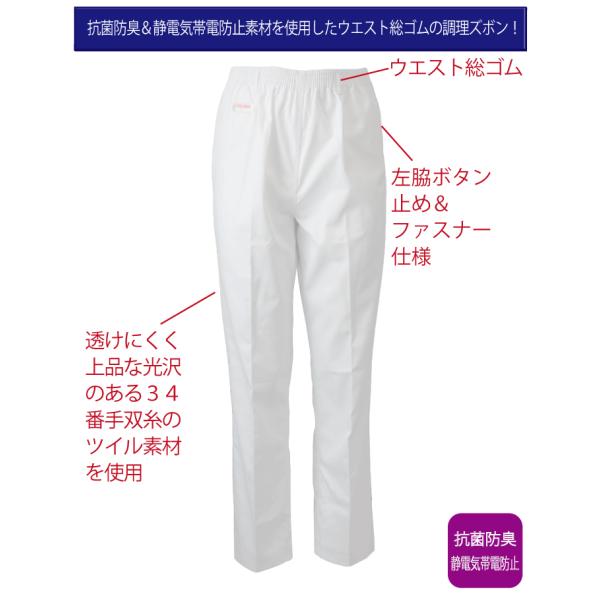 調理白衣 パンツ レディース ズボン 女性用 トレパン 給食 調理 白衣 飲食店 コック 厨房 キッチン 調理服 抗菌 総ゴム 白 6370-90 コクラヤ