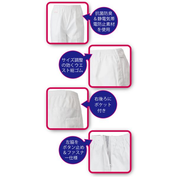 抗菌防臭&静電気帯電防止機能を備えた白の女性用ズボンです。