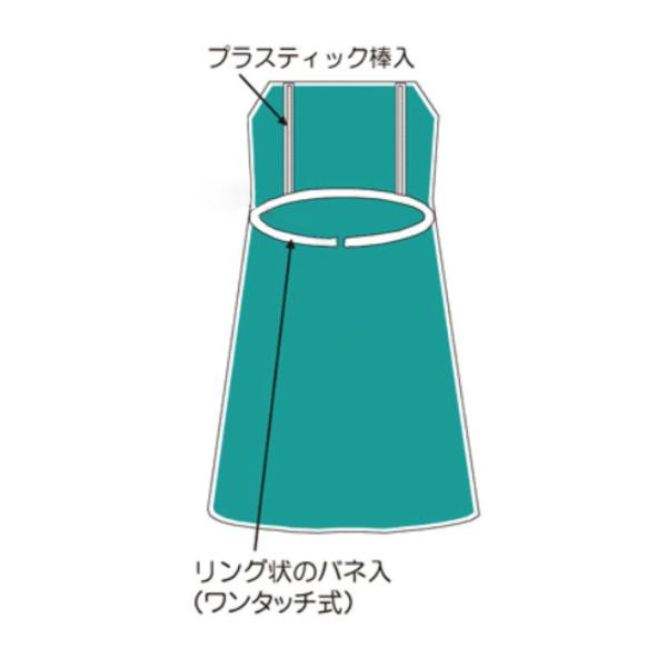 ・紐で結ばないので着脱が簡単でワンタッチで着用できる業務用ビニールエプロンです。