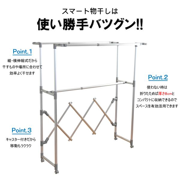 日本製 物干し 大容量アルミ製軽量スマート物干し キャスター付 シルバー 爆買