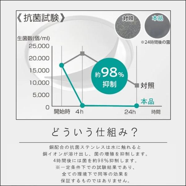 銅配合のステンレスで、ぬめりにくく清潔な毎日