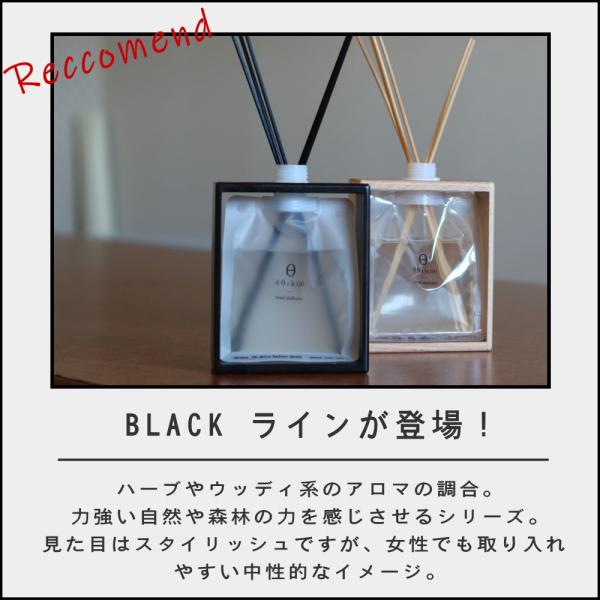 新登場のブラックラインも同じく4種類。ハーブやウッディ系のアロマになるように調合されており、ウィスキーを飲みながら、日の出前のドライブなど自分のリラックスタイムに側に置いておきたい落ち着いた香りです。