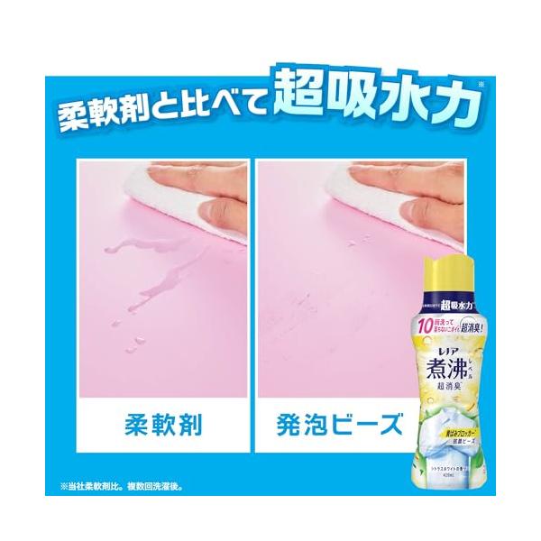 ・柔軟剤に比べて超吸水力* (*当社柔軟剤比。複数回洗濯後。)