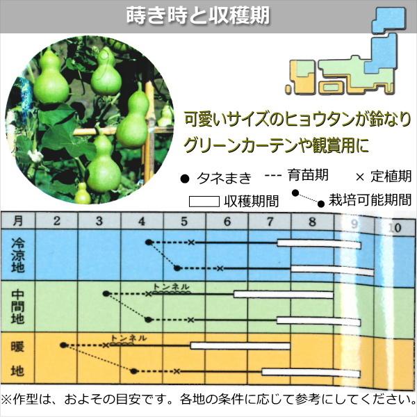 一枝にミニサイズ(8cm程)のヒョウタンが沢山成る品種。実を楽しみながらのグリーンカーテンも、おすすめです。可愛いらしいヒョウタンと、大長ヒョウタンなどサイズや形の違う品種と組み合わせると、さらに楽しみが増します。