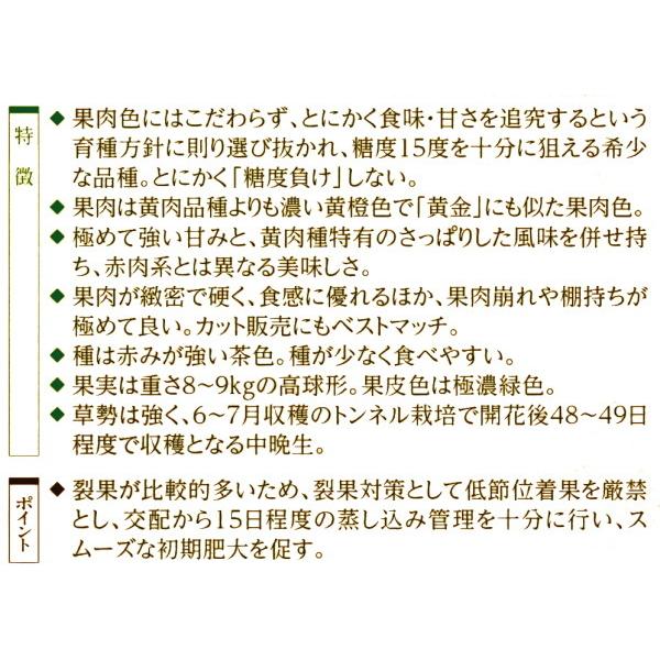 なえ屋の羽場 ★★★★★ 5.0(186件) 黄金色! 市場最高糖度! 接ぎ木 スイカ 金色羅皇 こんじきらおう 9cmポット苗 西瓜 黄金色大玉スイカ 【 金色羅皇 こんじきらおう 】 接ぎ木 ポット苗 市場最高糖度! 8〜9kgほどの大玉黄金色スイカ♪果肉は黄肉品種よりも濃い黄橙色で「黄金」にも似た果肉色のスイカ♪市場最高糖度と言われる果肉は、緻密で硬く食感に優れるほか、果肉崩れが少なくカットスイカにもgood! なえ屋の羽場 人気ランキング もっと見る なえ屋の羽場 商品一覧 もっと見る