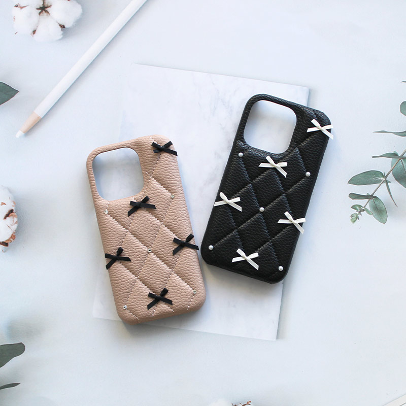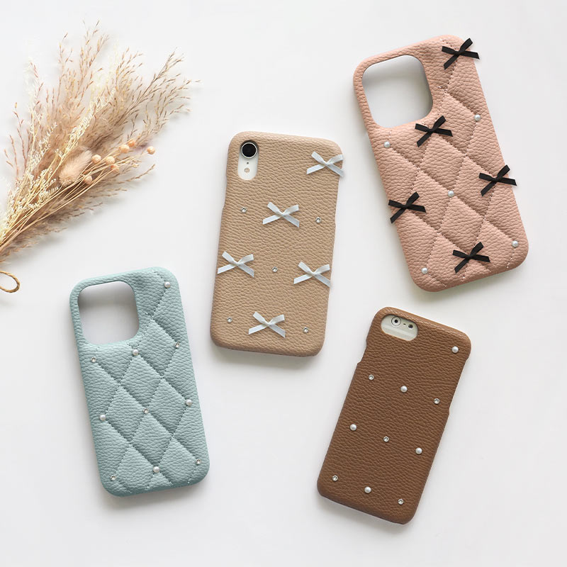 スマホケース スマホカバー iPhoneケース( レザーハードorキルティングケース×リボン )iPhone ケース iphone カバー アイフォン メール便送料無料 受注生産