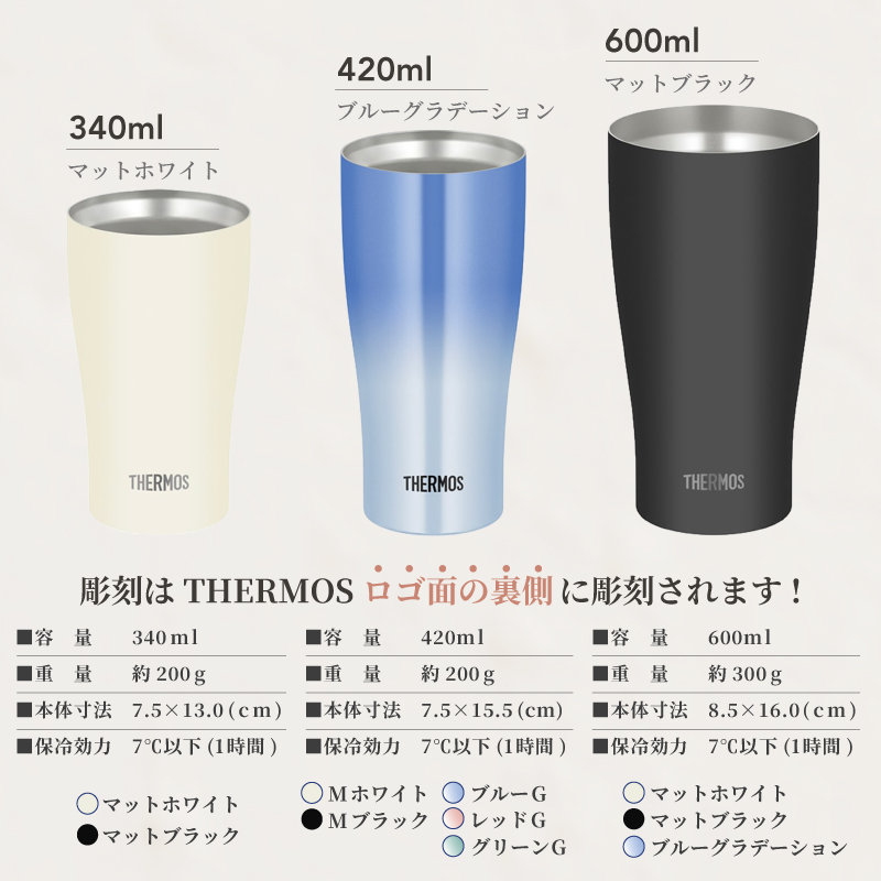 |母の日限定ラッピング|サーモス 真空断熱 タンブラー 選べる3タイプ JDYシリーズ 340 420 600ml 全5色 名入れ無料 即日可 保冷 保温