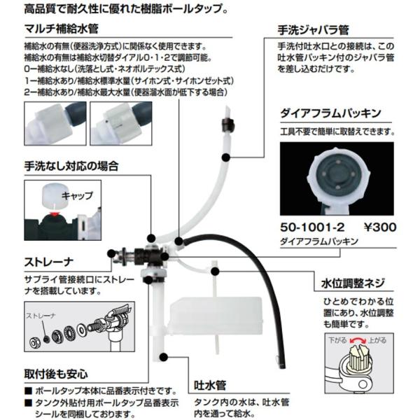 ●手洗ジャバラ管を取り外し、同梱のキャップを用いることで、手洗なしのタンクにも取付可能です