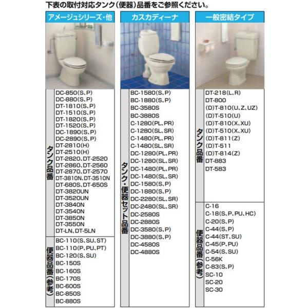 ●密結タンク、隅付タンク、平付タンクなど、さまざまなタンクに取り付けられます