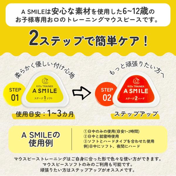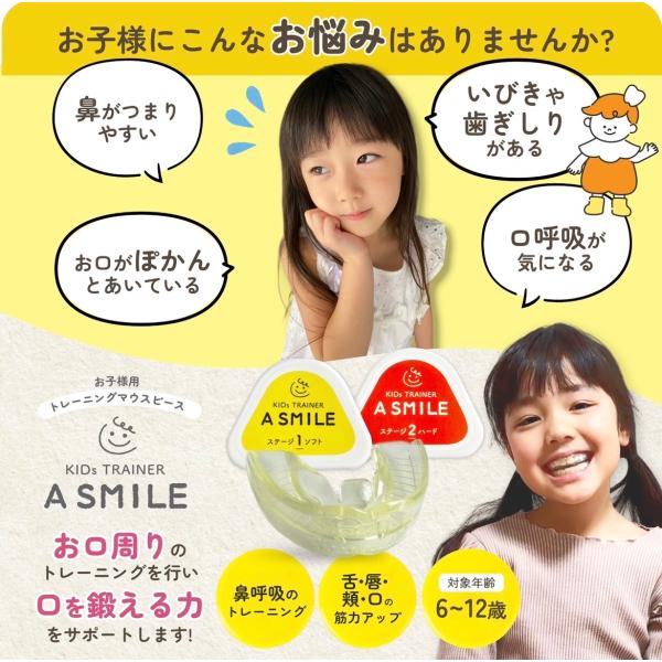A SMILE マウスピース 単品 子供用 睡眠用 歯ぎしり 食いしばり いびき トレーニング キッズ 寝る時用 歯軋り防止 食いしばり防止 いびき防止 ソフト ハード