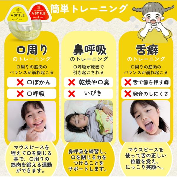 舌の位置/唇を閉じる練習/鼻呼吸を意識したトレーニングに。