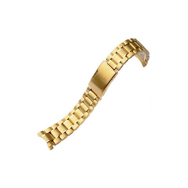 腕時計 交換バンド ベルト ステンレス無垢 プッシュ式 弓カン18mm 20mm 22mm ゴールド バネ棒2本+工具付
