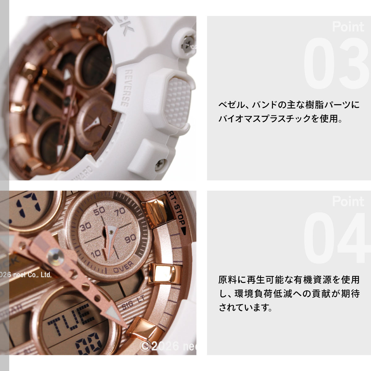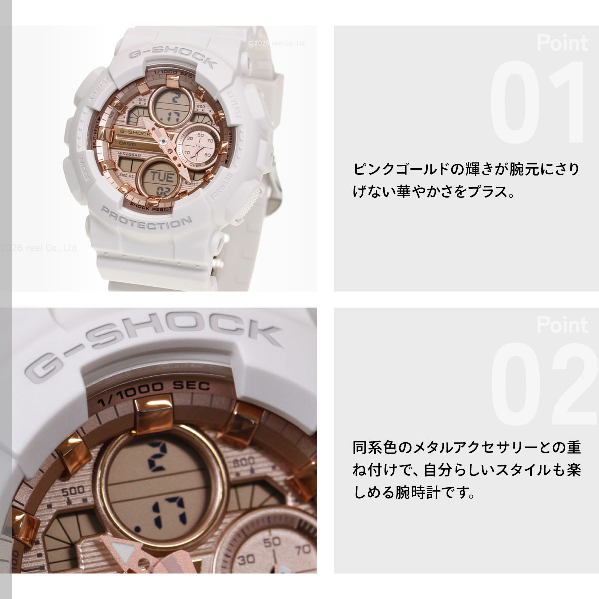 【Gショック G-SHOCK アナデジ 腕時計 メンズ レディース GMA-S140PG-7AJF ジーショック 人気のアナログ・デジタルコンビネーションモデルGMA-S140シリーズをベースにしたピンクゴールドのメタリックダイアルが印象的なモデル。黒・ピンク・白のカラー展開で、それぞれの色に映えるピンクゴールドの輝きが、腕元にさりげない華やかさをプラスします。文字板と同系色のメタルアクセサリーとの重ね付けで、自分らしいスタイルも楽しめる腕時計です。[カシオ Gショック CASIO G-SHOCK 2026 新作]】