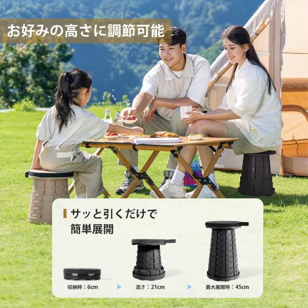 折りたたみ椅子 携帯椅子 コンパクト 軽量 1kg 伸縮式 耐荷重250kg 高さ調整 キャンプ 釣り 行列待ち 屋内屋外兼用