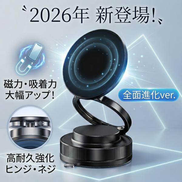 スマホホルダー 車 マグネット式 真空吸盤 瞬間固定 強力吸着 MagSafe対応 N55磁石 360°回転 片手ワンタッチ操作 マホスタンド 車載 マグセーフ