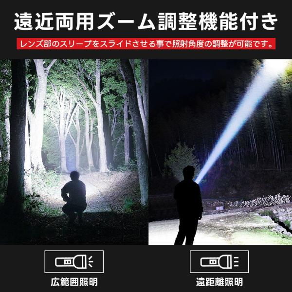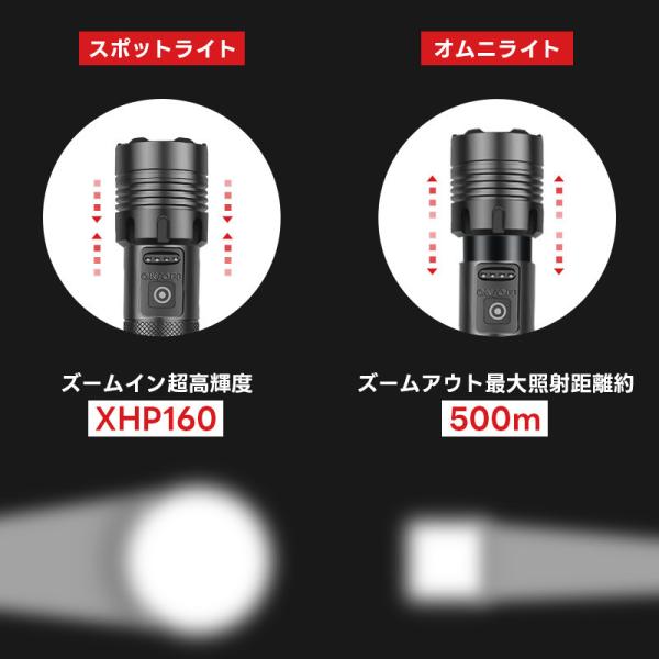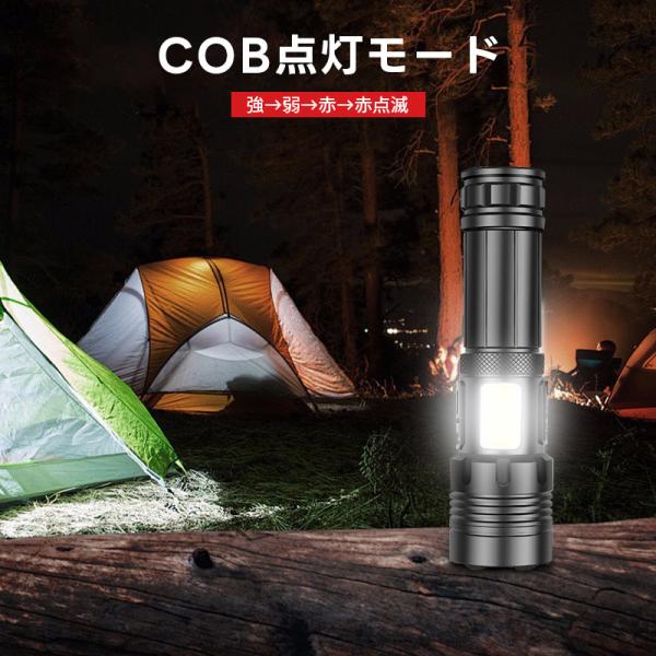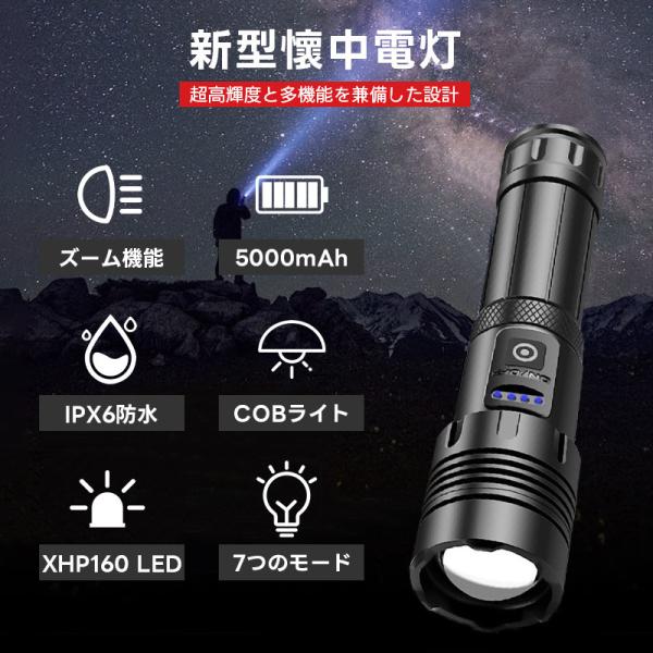 懐中電灯 強力 最強 ハンディライト 超高輝度 XHP160LED 充電式/電池式 5000mAh大容量 26650リチウム電池 単四電池適用 COB作業灯 IPX6防水