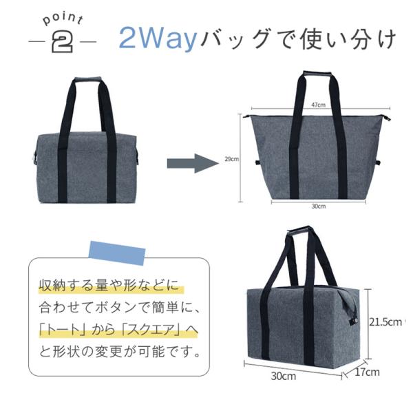 用途に合わせてトートバッグにもスクエアバッグにもなる優れモノ