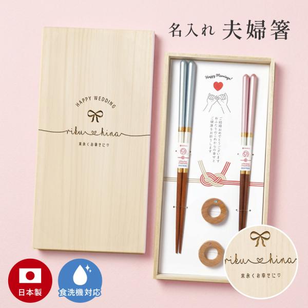 シンプル 夫婦箸 名入れ 結婚祝い ペアギフト メッセージ入り めおと箸 高級箸 桐箱 おしゃれ かわいい 箸 箸置き ペア ギフト プレゼント 贈り物 ウェディング