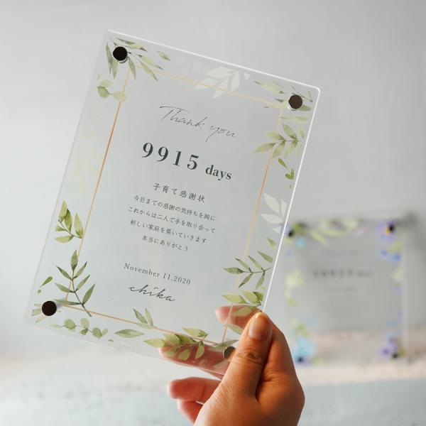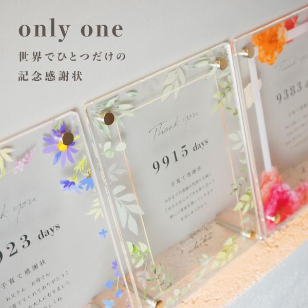 子育て感謝状 結婚式 フォトフレーム 名入れ おしゃれ 花 アクリル 両親へのプレゼント 挙式 披露宴 ウェディング ウエディング ブライダル ギフト 成人