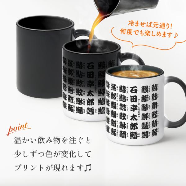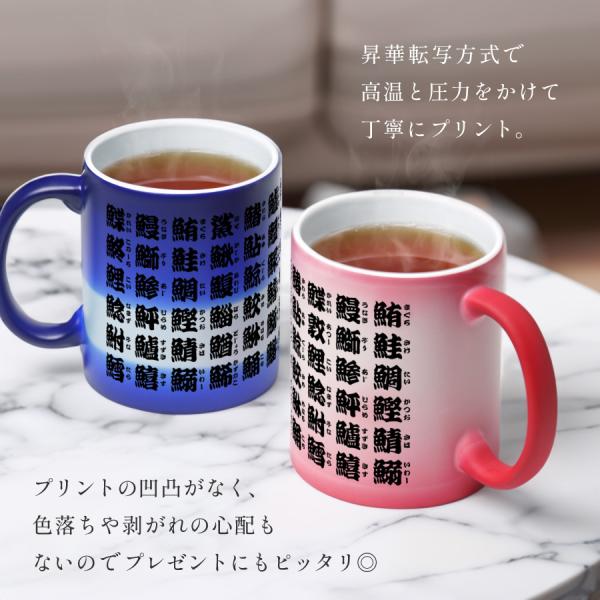 【お湯を入れると ?!】デザインが浮かびあがる 魚漢字 寿司湯呑風 名入れ イニシャル マグカップ 温感 オリジナル コップ 名前入りマグカップ 陶器 食洗機対応