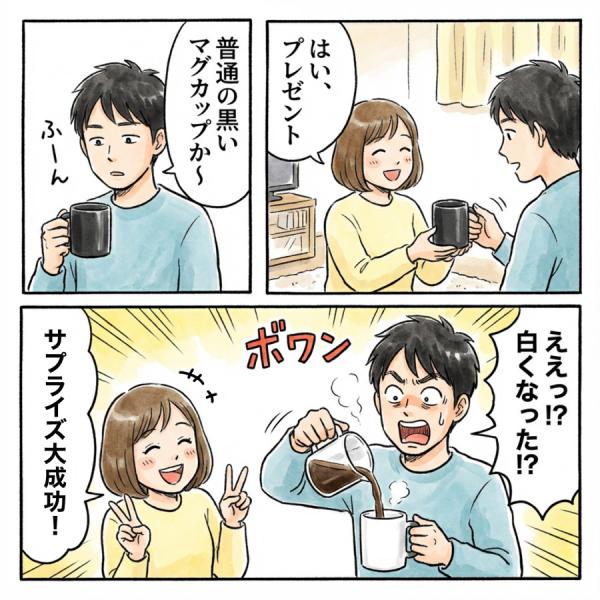 お湯を注ぐとデザインが浮き出る、名入れ 温感 マグカップ。