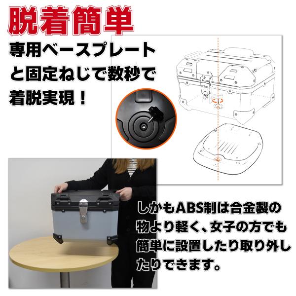 57L 大容量 リアボックス バイク バイク用 ABS製 スーパーカブ クロスカブ ハンターカブ 防水 耐衝撃 トップケース リアケース バイクキャリー 鍵付 爆買