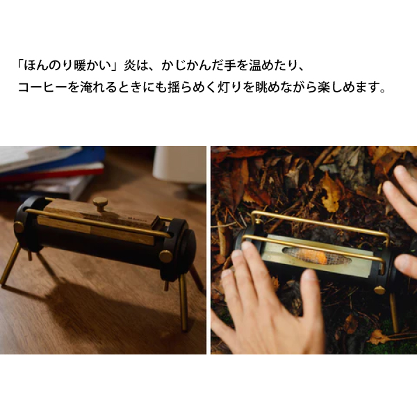 アウトドアではサイドテーブルに、家では卓上や出窓・ベランダになど場所を選ばず、オレンジ色に美しく揺らぐ炎を楽しめます。
