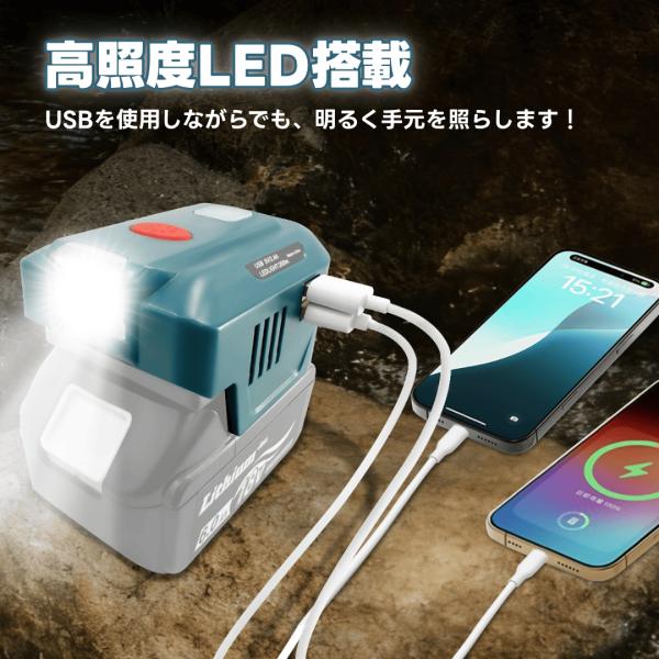 インバーター 防災 ポータブル 電源 アダプター AC USB コンセント LED ライト 18V makita バッテリー モバイル 100V マキタ 18V バッテリー 互換 (INS01-BL)
