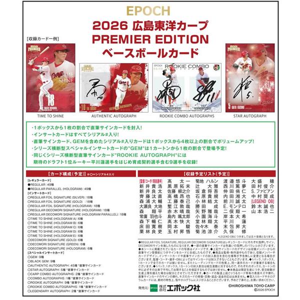 トレカショップ二木 ★★★★★ 4.5(8,414件) 送料無料 (予約)EPOCH 2026 広島東洋カープ PREMIER EDITION ベースボールカード BOX(送料無料) 2026年5月2日発売 トレカショップ二木 人気ランキング もっと見る トレカショップ二木 商品一覧 もっと見る