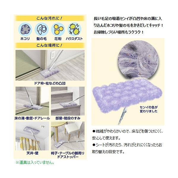 ◆驚きの吸着力!ふわふわの長い毛足が床のホコリ・髪の毛・微細なハウスダストまでひとふきですばやく、たっぷり吸着!お部屋のすみや床の溝にもフィットして、すみずみの汚れもキャッチ、からめとって離しません!
