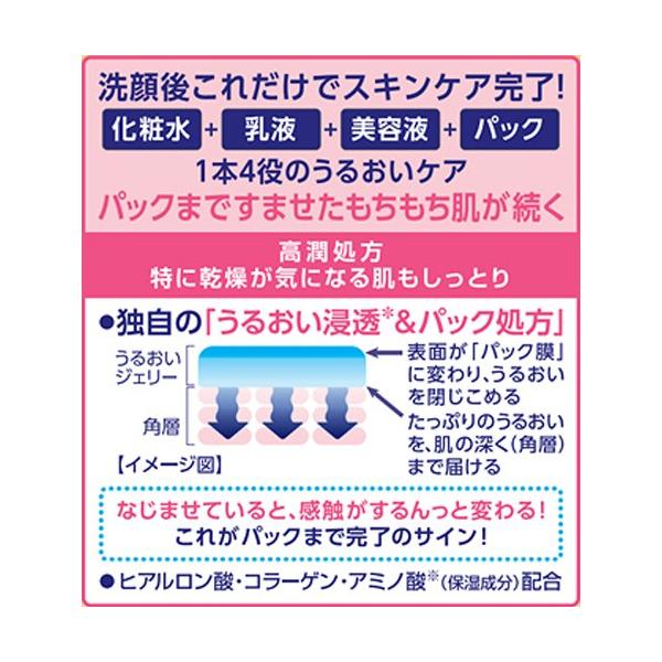 ◆「化粧水」「乳液」「美容液」「パック」1本4役のうるおいケア。パックまですませたもちもち肌が続く。