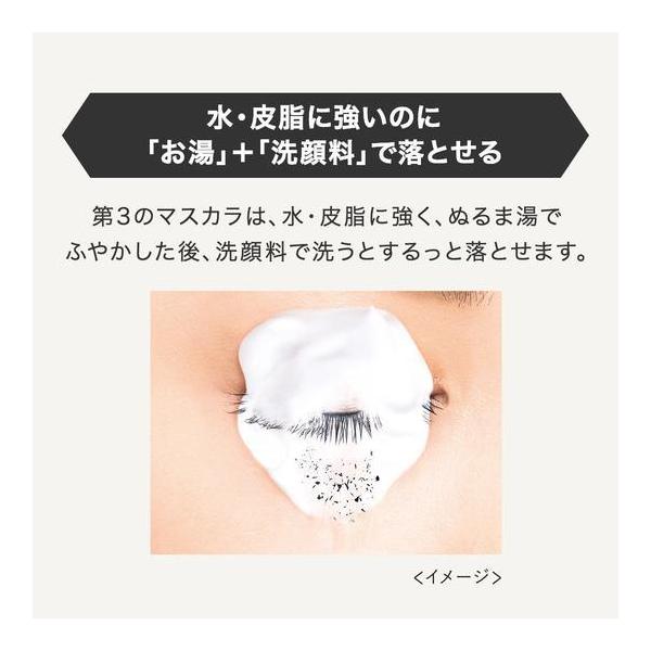 第3のマスカラは、水・皮脂に強く、洗顔料になじむとするっと落とせます。