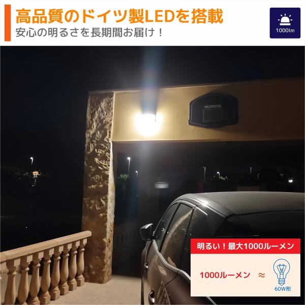 【高輝度で快適な光】明るく長寿命なドイツ製LEDを20個搭載し、最大1,000ルーメンの高輝度を実現した玄関灯です(60W形相当)。特別に設計されたディフューザーが光を均一に拡散し、眩しさを抑えて目に優しい光を提供します。