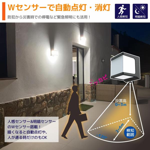 【人感センサー搭載】暗くなると人感センサーが自動的に作動し、人や物を検知するとライトが点灯します。明るくなるとセンサーが自動に停止するため、操作の手間がかかりません。防犯ライトとしてもご使用いただけます。