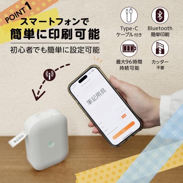 シールプリンター サーマルプリンター 本体 スマホ対応 スマホ 専用 Bluetooth 接続 感熱式 USB TypeC充電式