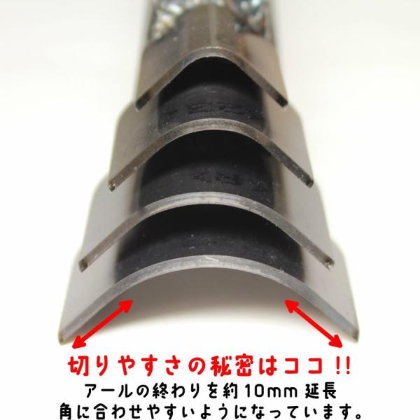 刃の形状がアールの曲線に加え直線部分があるため位置合わせのしやすい形状になっています。