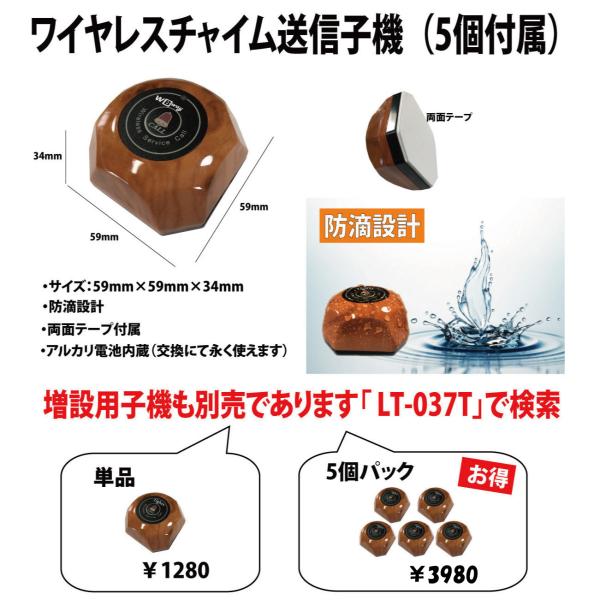 WBway 業務用 ワイヤレスチャイム 基本セット (子機5台付き:増設可) LT-323A 店舗 飲食店 介護施設 呼び出し コードレス チャイム [改良版]