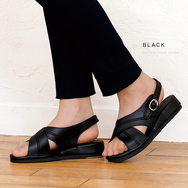 [送料無料] オフィスサンダル ナースサンダル 黒 白 女性 レディース ナース 看護師 医療 受付 オフィス OL 2E ナースリークロスサンダル