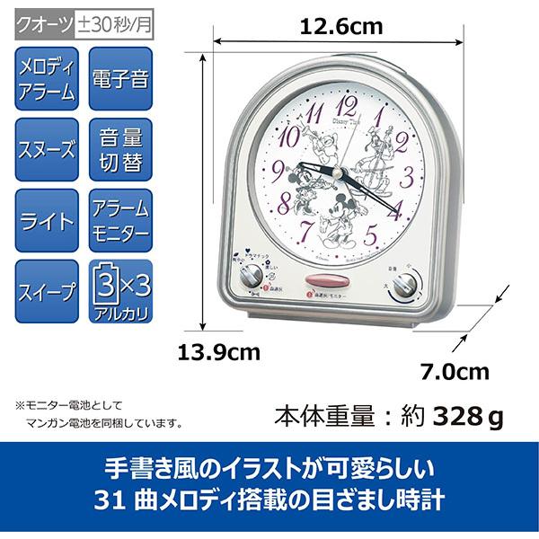 目覚まし時計 セイコー FD486S ディズニー ミッキー&フレンズ スイープ 音が静か ライト 31曲 音量調節 子供 こども オシャレ おしゃれ 記念品 延長保証