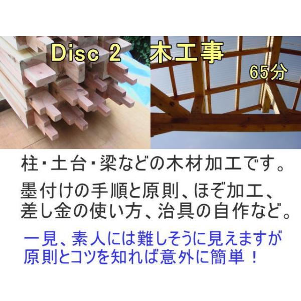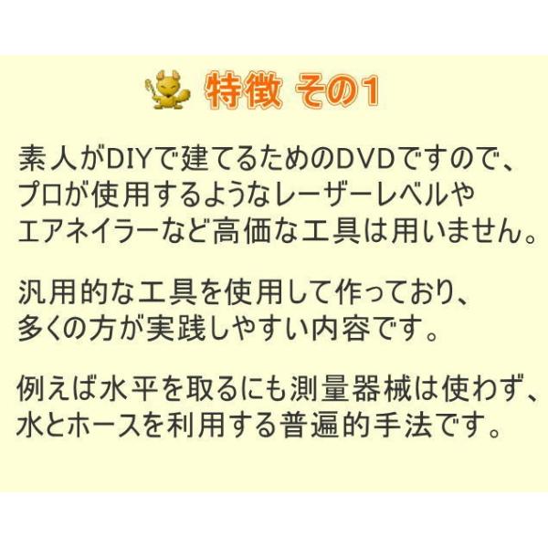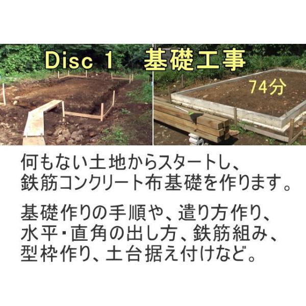 水平・垂直の出し方、基礎作り、木材加工、屋根・壁・床作りなど、建物作りに必要な基本の知識と技術がこの3枚(延べ3時間30分)に全部納められています。