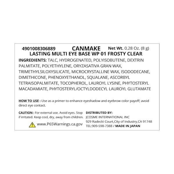 NYY STORE ★★★★★ 5.0(192件) キャンメイク 送料無料 キャンメイク ラスティングマルチアイベース WP01 フロスティクリア 8g 01 フロスティクリア/8グラム (x 1)/4901008306889・Color:01 フロスティクリア・パッケージ個数:1・原産国 :日本・商品サイズ (幅×奥行×高さ) :33×20×95・ブラント名:キャンメイク・メーカー名: 井田ラボラトリーズ・商品の重量: 10g NYY STORE 人気ランキング もっと見る NYY STORE 商品一覧 もっと見る