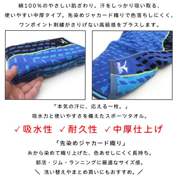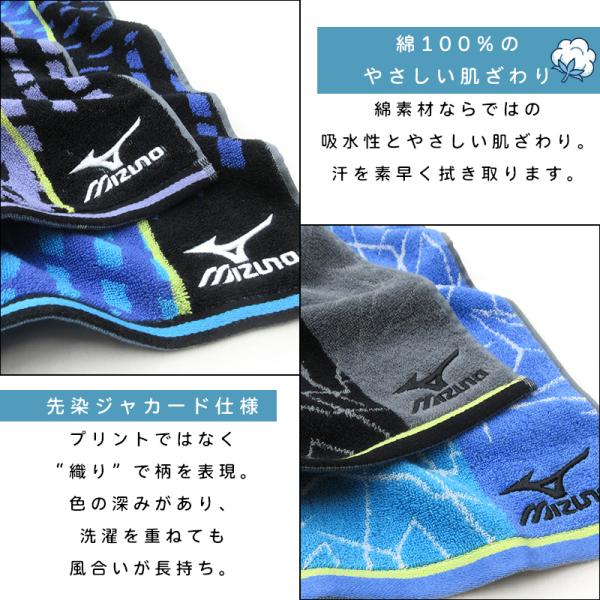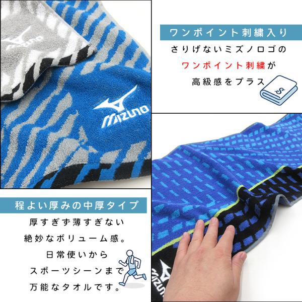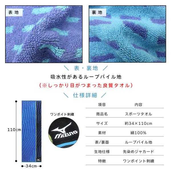 ミズノ mizuno スポーツタオル 34×110cm 綿100% 両面パイル ジャガードタオル m4856 m4857 海 プール アウトドア スポーツ 部活 ジョギング st1s メール便B