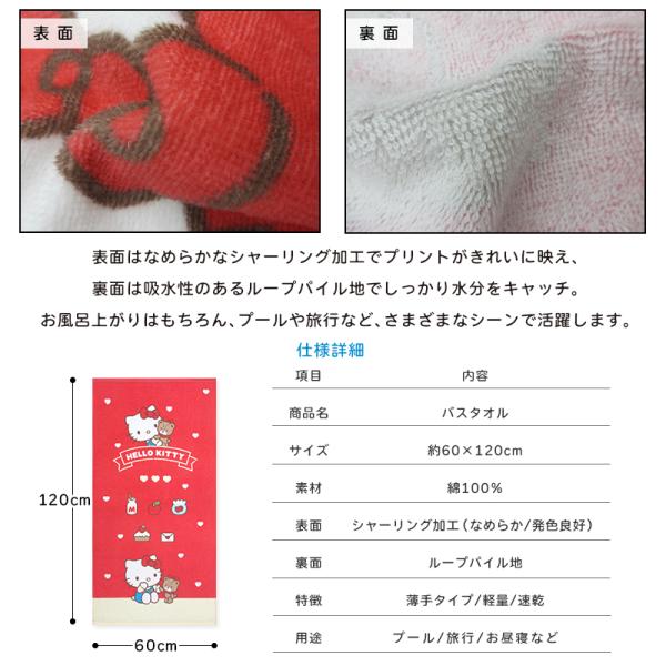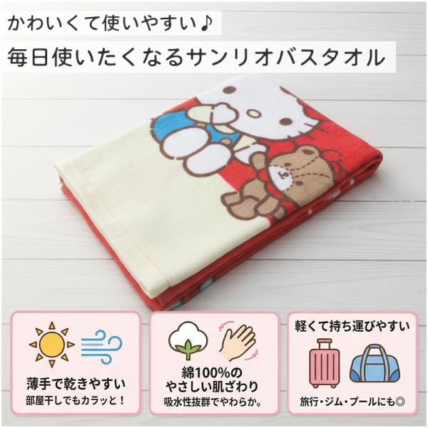 バスタオル サンリオ ハローキティ 60×120cm 綿100% キャラクター 保育園 幼稚園 小学生 プール 水遊び タオル 湯上りタオル 女の子 かわいい bt1 メール便A