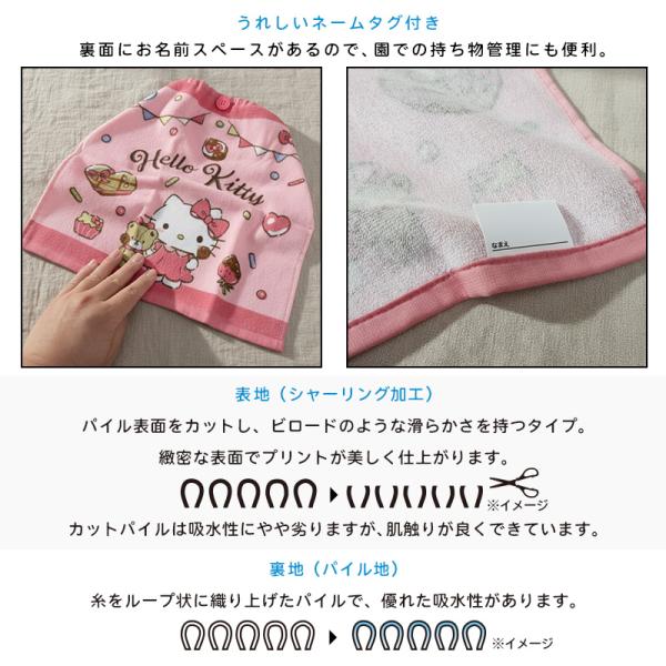 綿100%でお子様のお肌に優しく、吸水性に優れています。幼稚園・保育園の手拭きタオルとして大変人気があります!