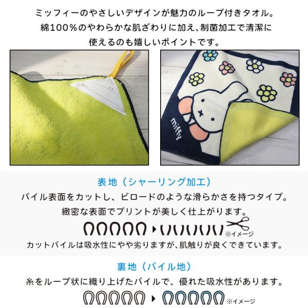 ディックブルーナ ミッフィー ループタオル 33×33cm 綿100% ネームタグ付き 制菌加工 キャラクター 保育園 幼稚園 ループ付きタオル rt1 メール便C