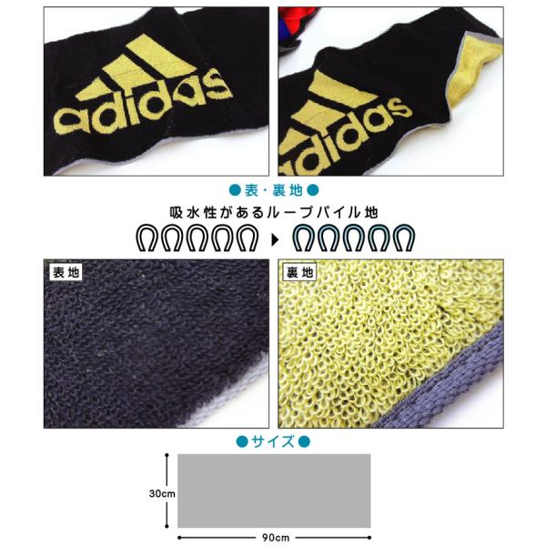 ロングフェイスタオル アディダス adidas 30×90cm 綿100% 両面パイル ジャガードタオル 手拭き 顔拭きタオル スポーツタオル ft1s fts メール便B