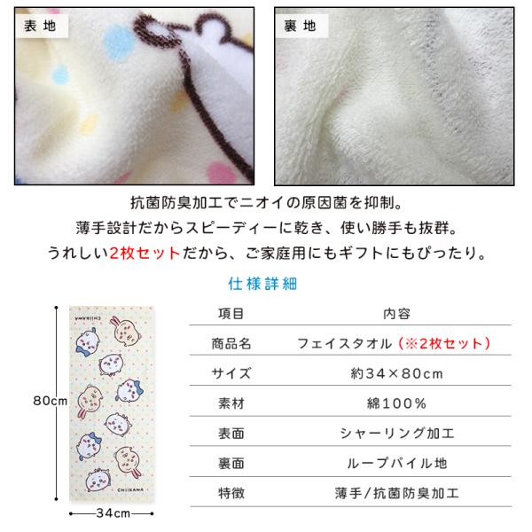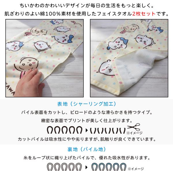 ちいかわ フェイスタオル 柄違い 2枚セット 34×80cm 綿100% キャラクター ハチワレ うさぎ 保育園 幼稚園 かわいい 男の子 女の子 水遊び ft2 メール便A