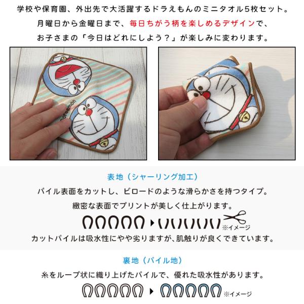 ドラえもん ミニタオル 柄違い 5枚セット 15×15cm 綿100% 制菌加工 プチタオル 保育園 幼稚園 小学生 男の子 女の子 かわいい キッズ ハンカチ pt5 メール便OK